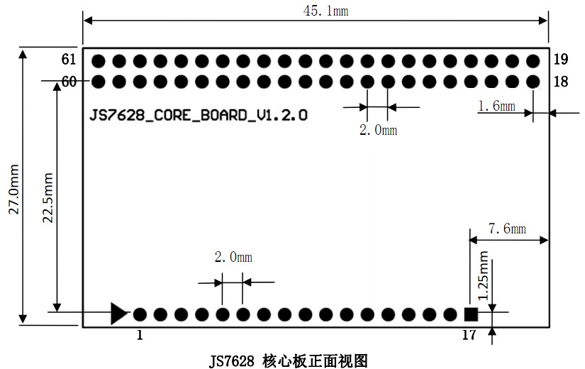 | 引脚接口 | 1×17、2×22 2.0mm排针接口 |