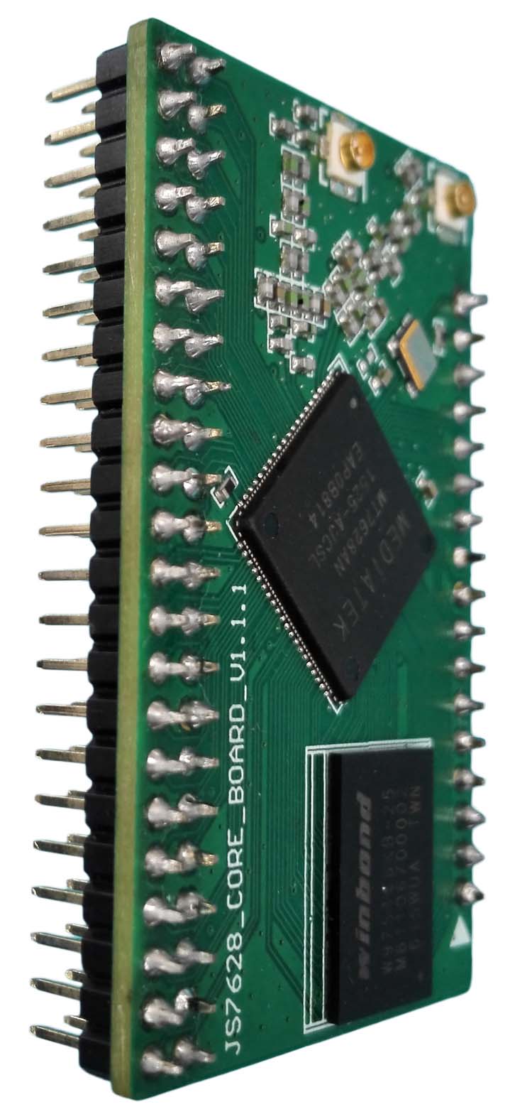 JS7628核心板模块是杭州卓钛科技有限公司推出的一款基于MTK(联发科)MT7628AN/NN SOC芯片方案的wifi模块