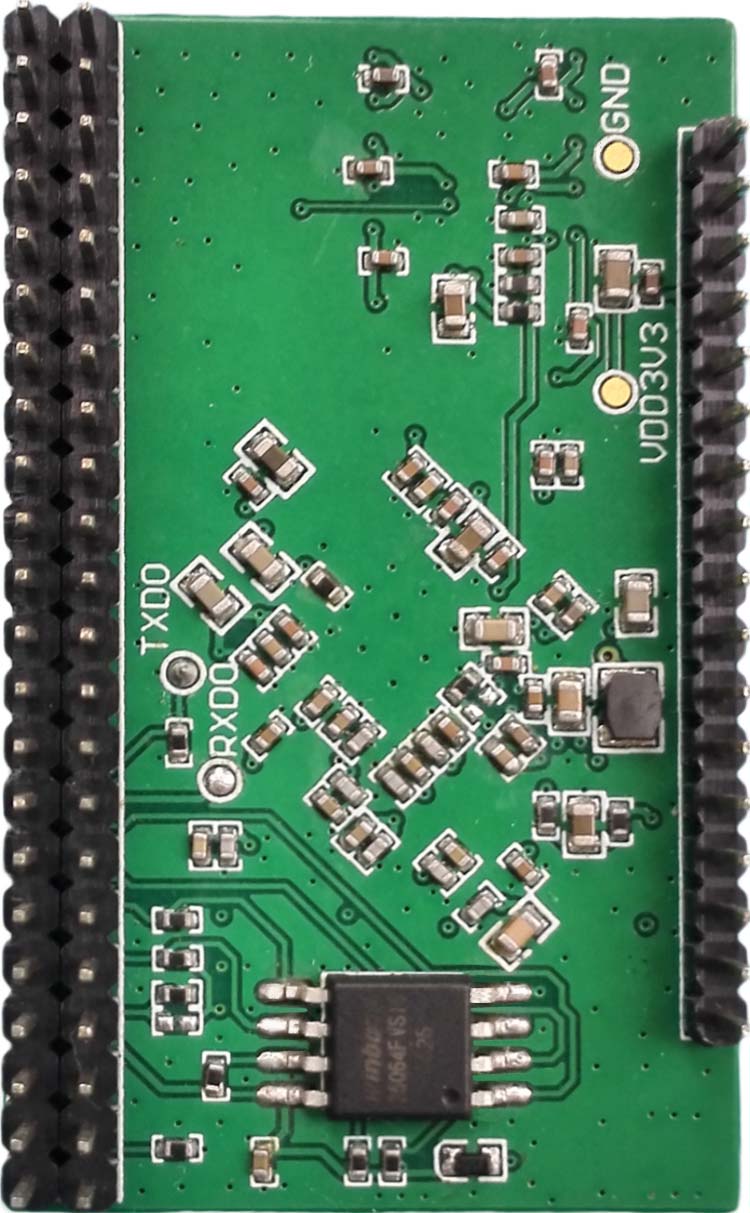 本模块体积小、功耗低、发热量小,wifi、网口传输性能稳定。运行openwrt(linux)系统,可长期稳定运行。模块外围电路非常简单,仅需加上3.3V DC电源,即可让系统启动,并可通过WIFI控制。采用镀金排针接口,可非常稳定的固定在底板上。